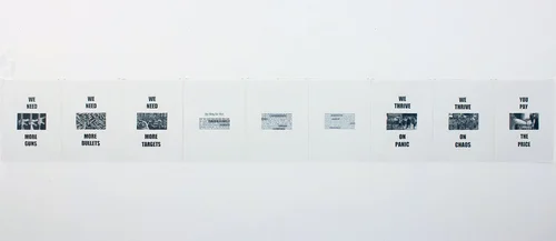 Domestic Tranquility from the Constitution Project, 2021, 13 hand cut texts, 8" x 8"